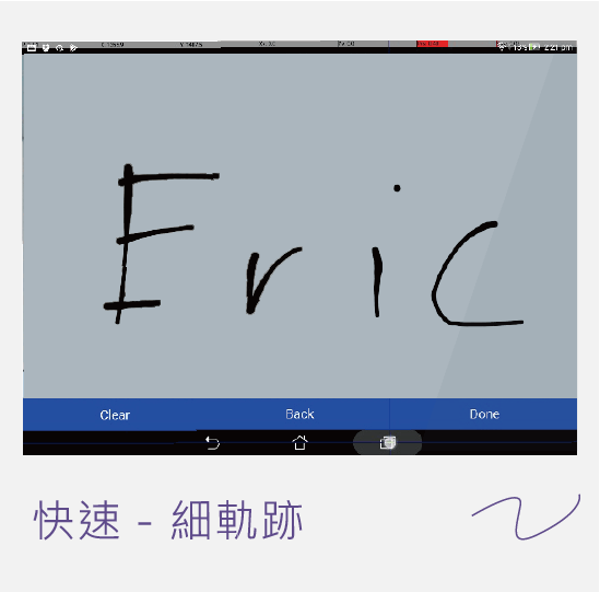 將簽名的座標、壓力、角度以及簽署過程完整記錄。