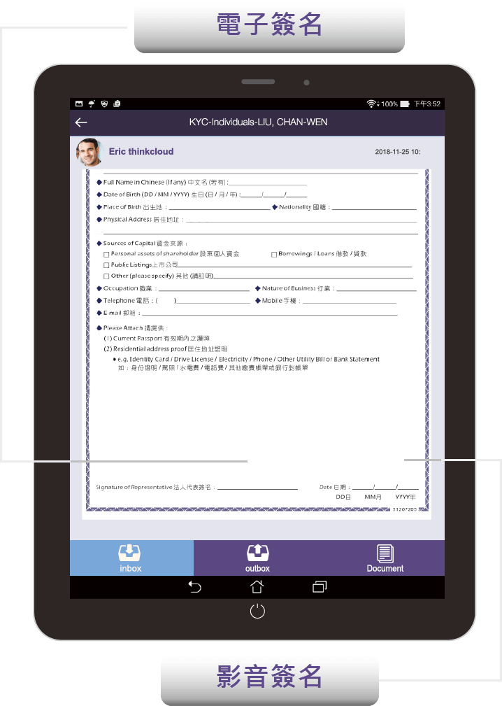 透過第三方臉部辨識系統來輔助辨識簽署者的身份,使系統更加完善