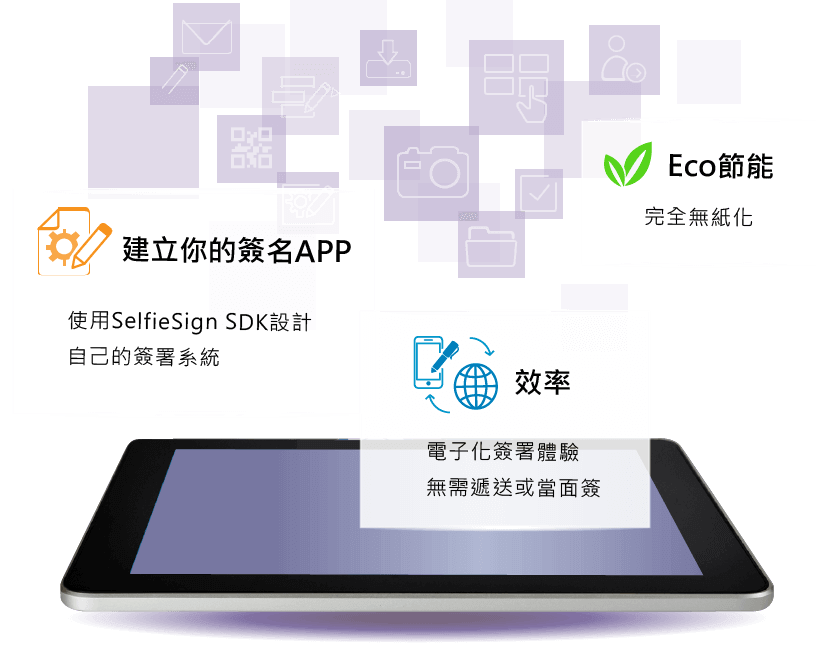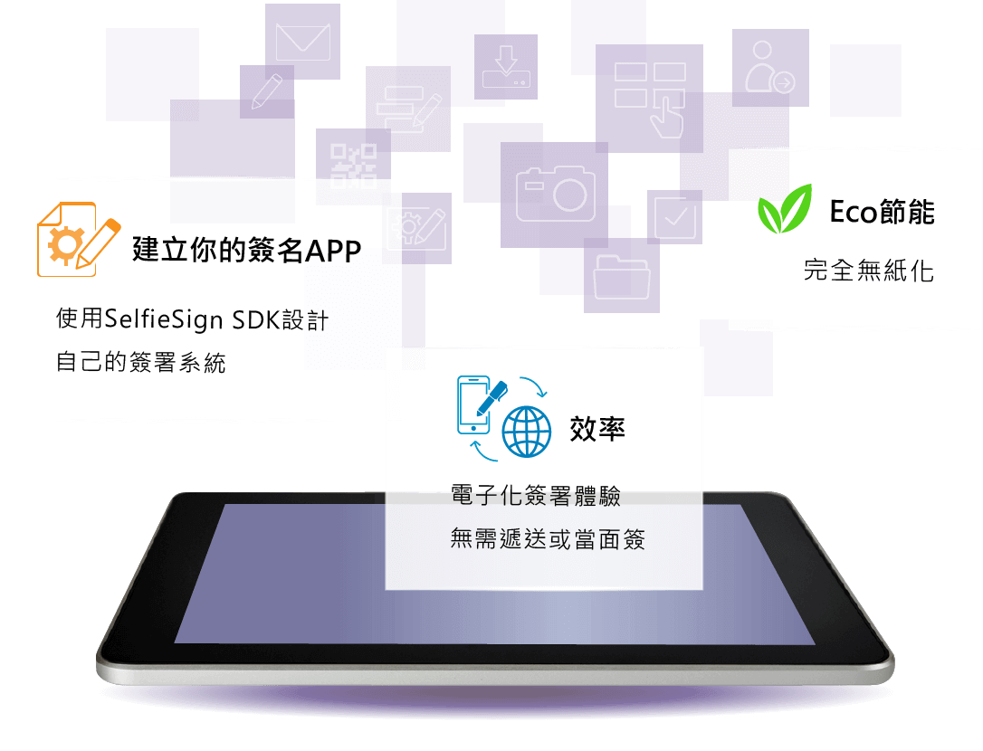 使用SelfieSign SDK模組將SelfieSign元件嵌入到您的應用程式和系統中,即可升級您的簽名系統並立即實現無紙化。